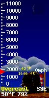 WXSIM forecast: Dense overcast in the morning, becoming mostly cloudy to cloudy in the afternoon. Rain likely in the morning, then a chance of rain in the afternoon. Windy and relatively mild. High 56°, but temperatures falling in the afternoon. Wind south-southeast around 19 mph, gusting to 30 mph, in the morning, becoming west-southwest in the afternoon. Chance of precipitation 80 percent. Precipitation mostly between half an inch and one inch.